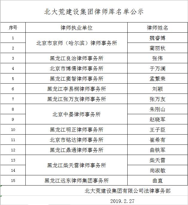 北大荒建設(shè)集團(tuán)律師人才庫(kù)入庫(kù)成員公示