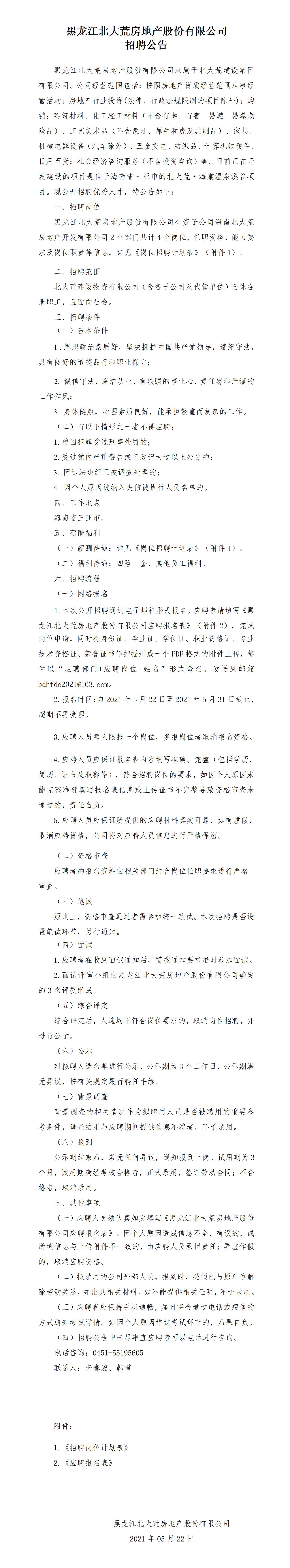 黑龍江北大荒房地產(chǎn)股份有限公司招聘公告